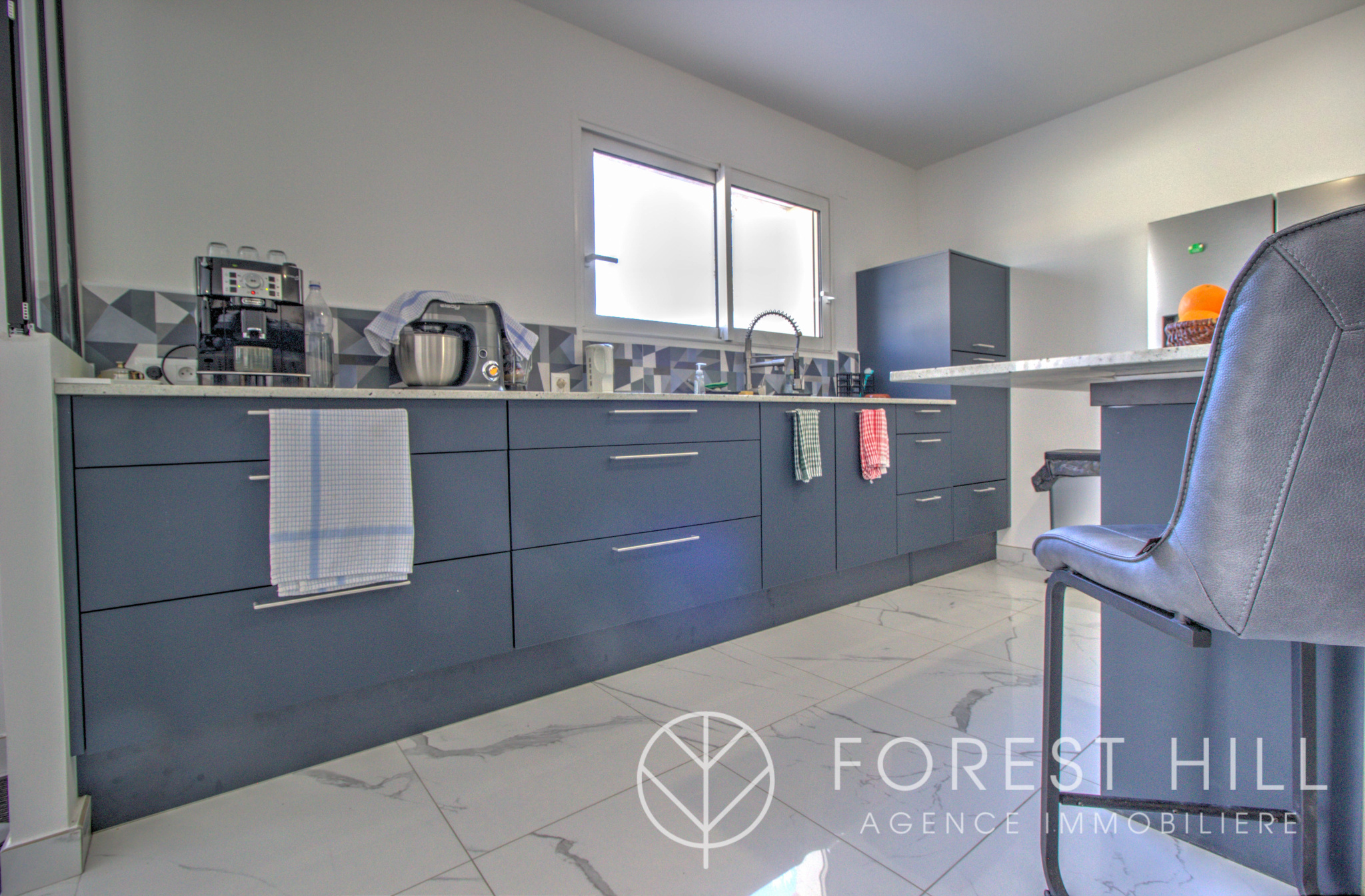 Forest Hill Céret vous invite à découvrir cette villa de plain-pied, construite en 2023, et implantée sur un terrain plat de 440 m2. Cette maison moderne offre une configuration optimisée et fonctionnelle : une vaste pièce de vie baignée de lumière, réunissant une cuisine ouverte et un salon, pour une superficie totale de plus de 40 m2.