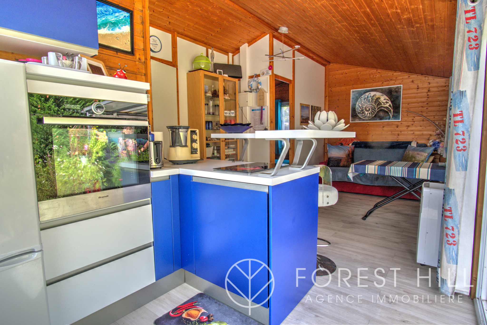 Au calme absolu, très beau chalet de plain-pied rénové sur une terrain de plus de 200 m2 en pleine propriété.