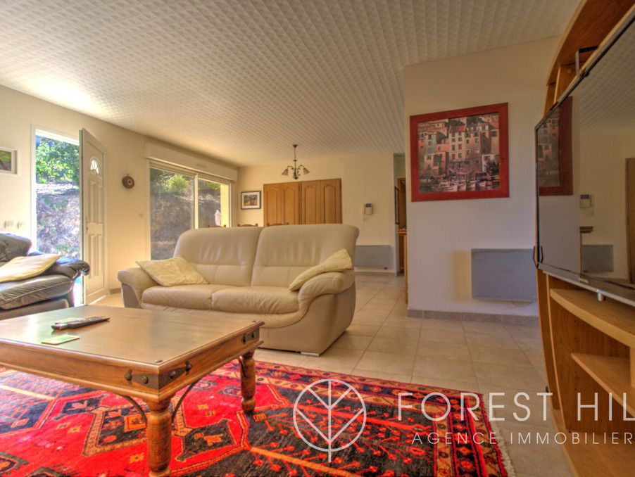 L'agence immobilière Forest Hill Céret vous propose cette charmante maison de plain-pied, nichée dans un écrin de verdure. Elle se compose d'une vaste pièce de vie lumineuse de plus de 53 m2, incluant une cuisine ouverte, ainsi que de trois belles chambres, une salle de bains et un WC séparé. Au niveau inférieur, vous découvrirez un appartement indépendant de type T3, idéal pour la location saisonnière ou pour accueillir famille et amis en toute intimité. À l'extérieur, vous profiterez d'une belle piscine avec un agréable espace de détente autour, parfait pour savourer les journées ensoleillées.