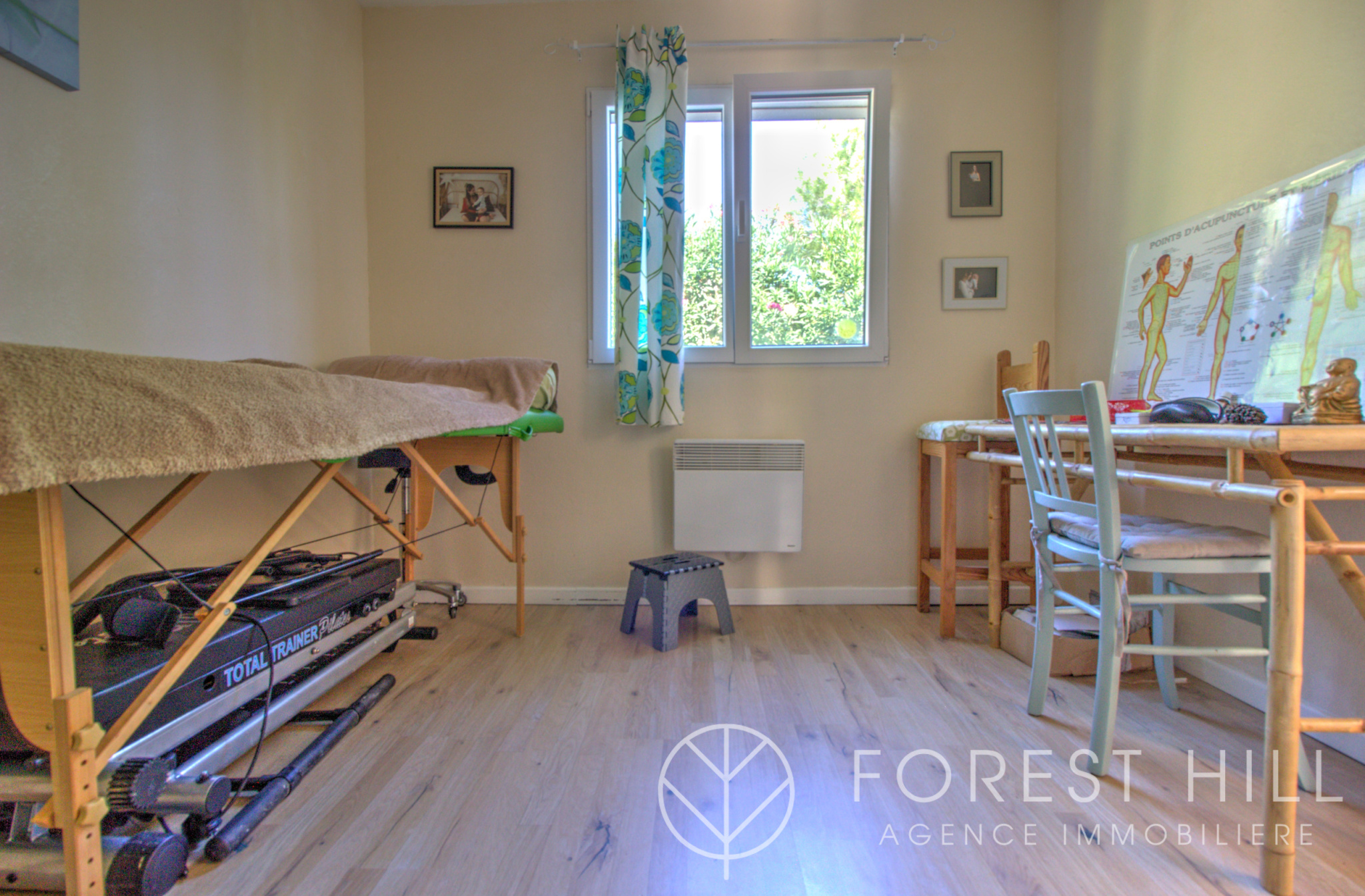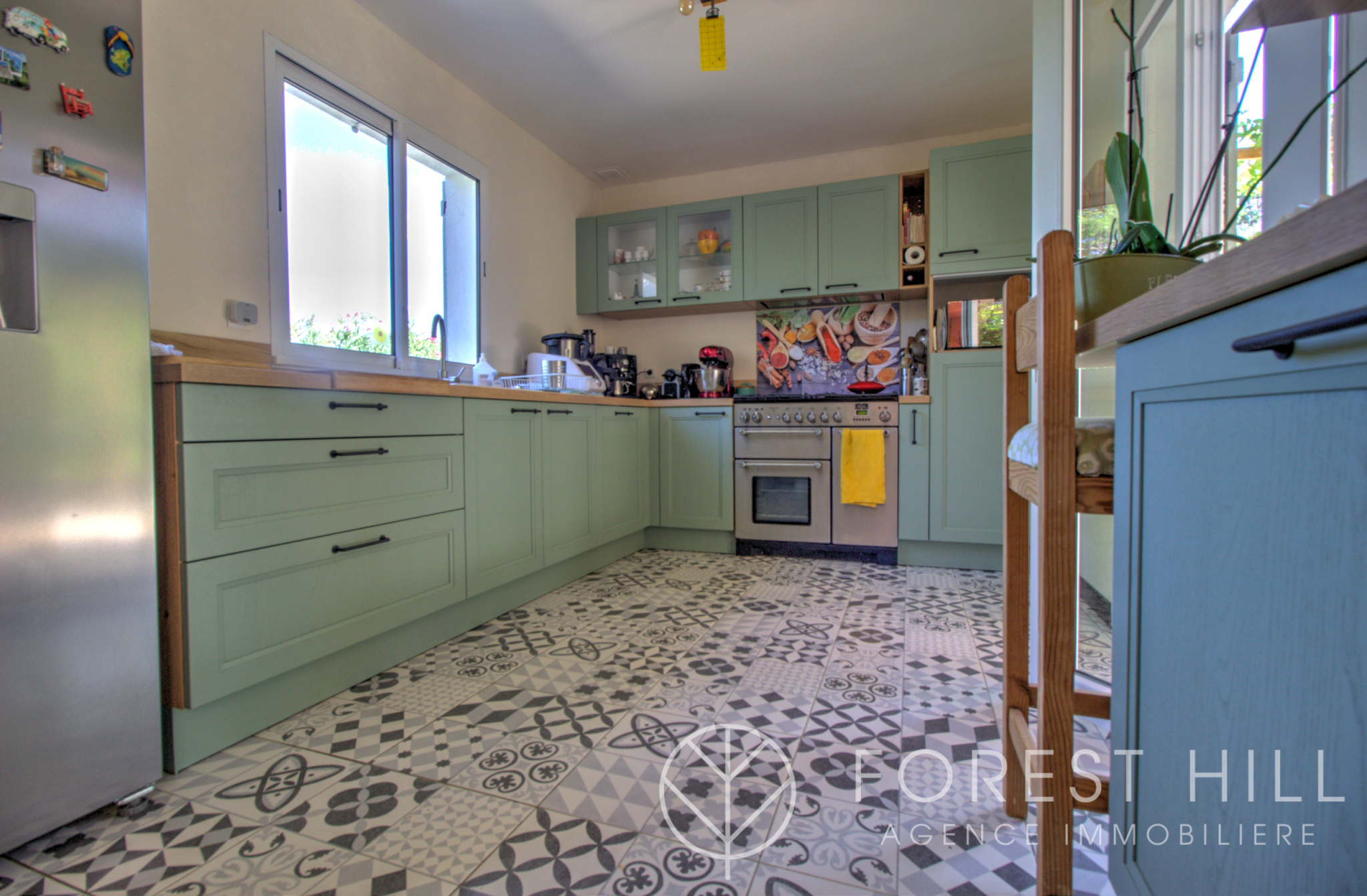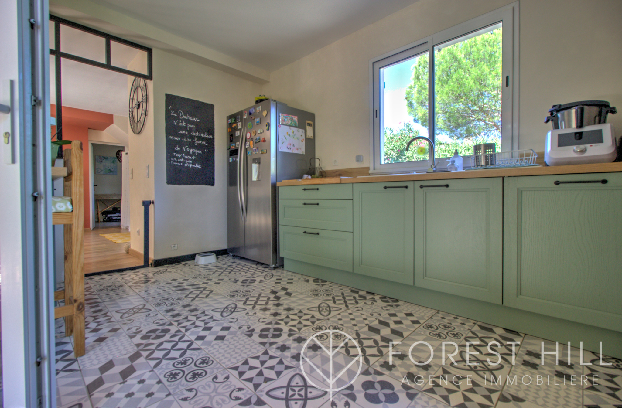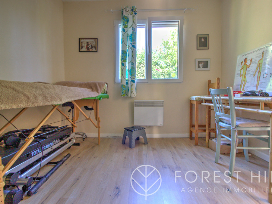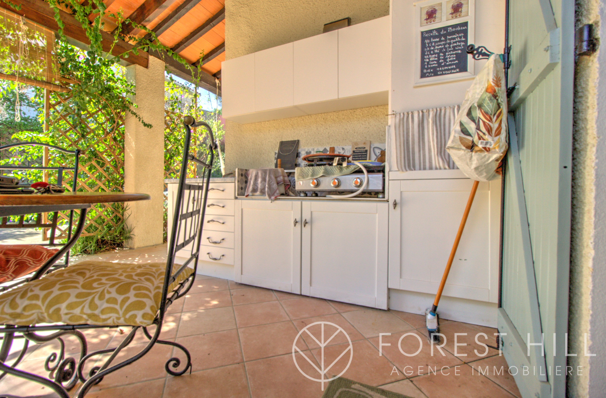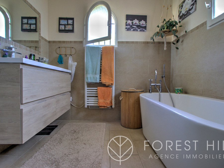 Située au calme, cette maison offre de beaux volumes avec une cuisine américaine récente et un salon-séjour lumineux donnant sur une terrasse avec cuisine d'été, ainsi qu'un jardin arboré.