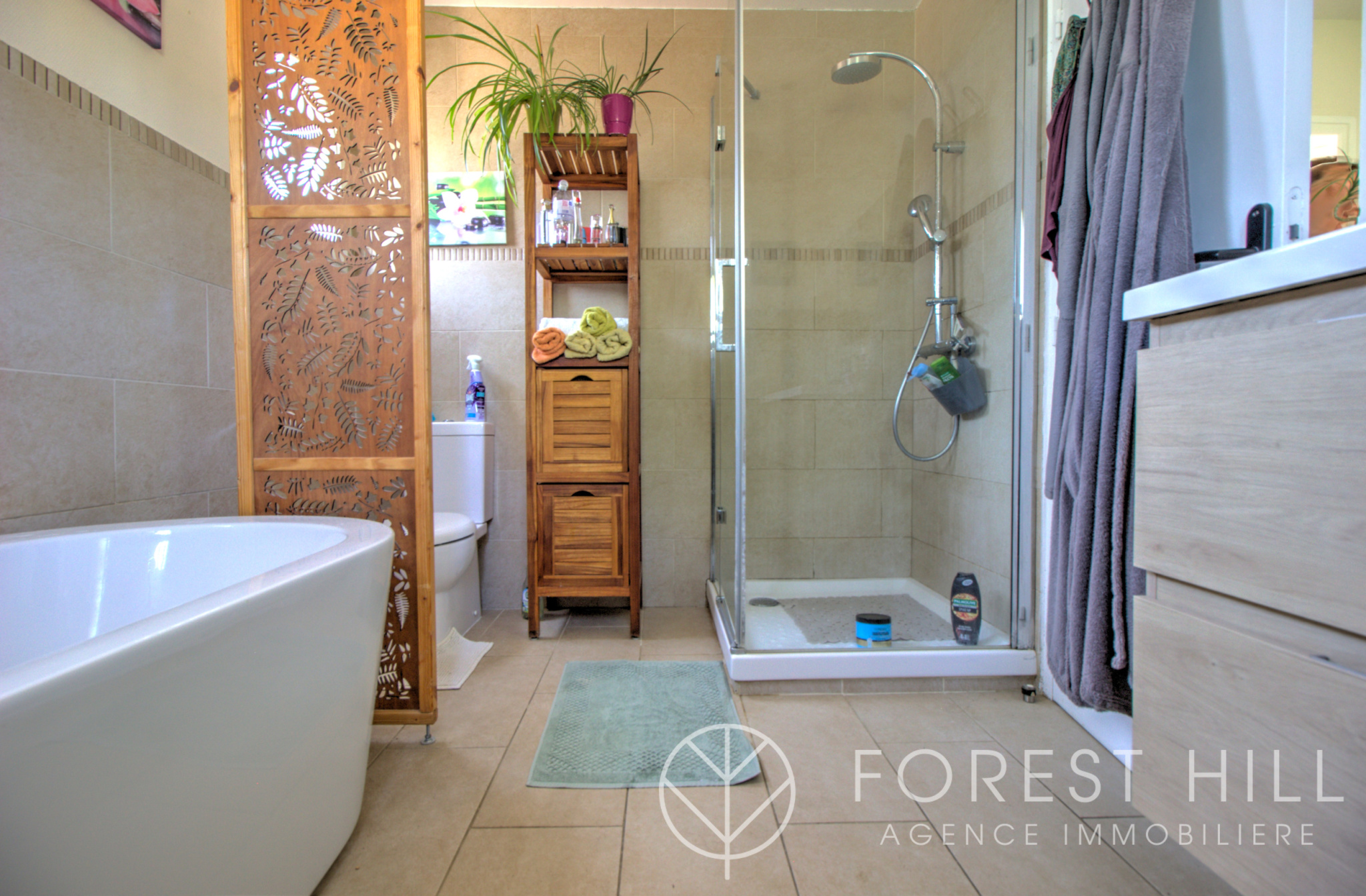 Au rez-de-chaussée, vous trouverez également une chambre avec sa salle d'eau, d'un toilette séparé. Un poêle assure le chauffage du rez-de-chaussée et de l'étage.
