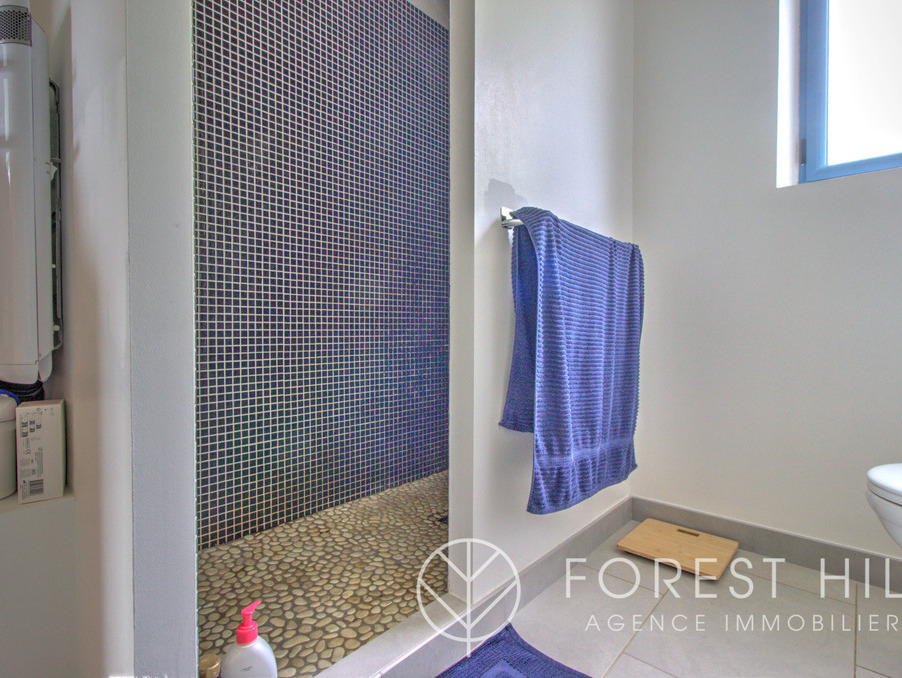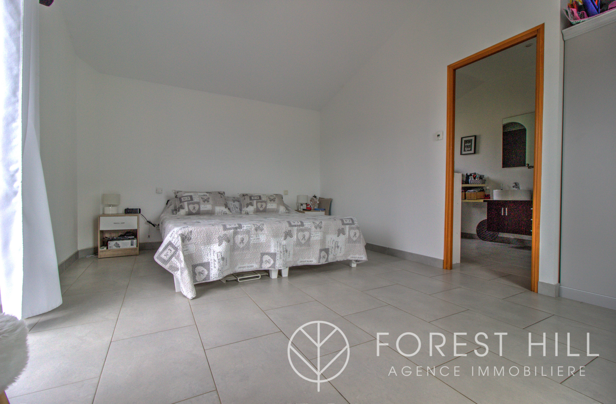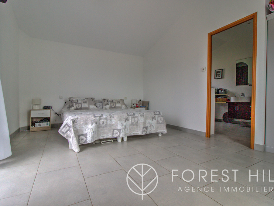 À l'étage, vous trouverez trois belles chambres, chacune disposant de sa propre salle d'eau et offrant une vue agréable. L'extérieur, sans vis-à-vis, vous propose un bel espace de détente agrémenté d'une piscine. Un emplacement de parking permet également de stationner un second véhicule.